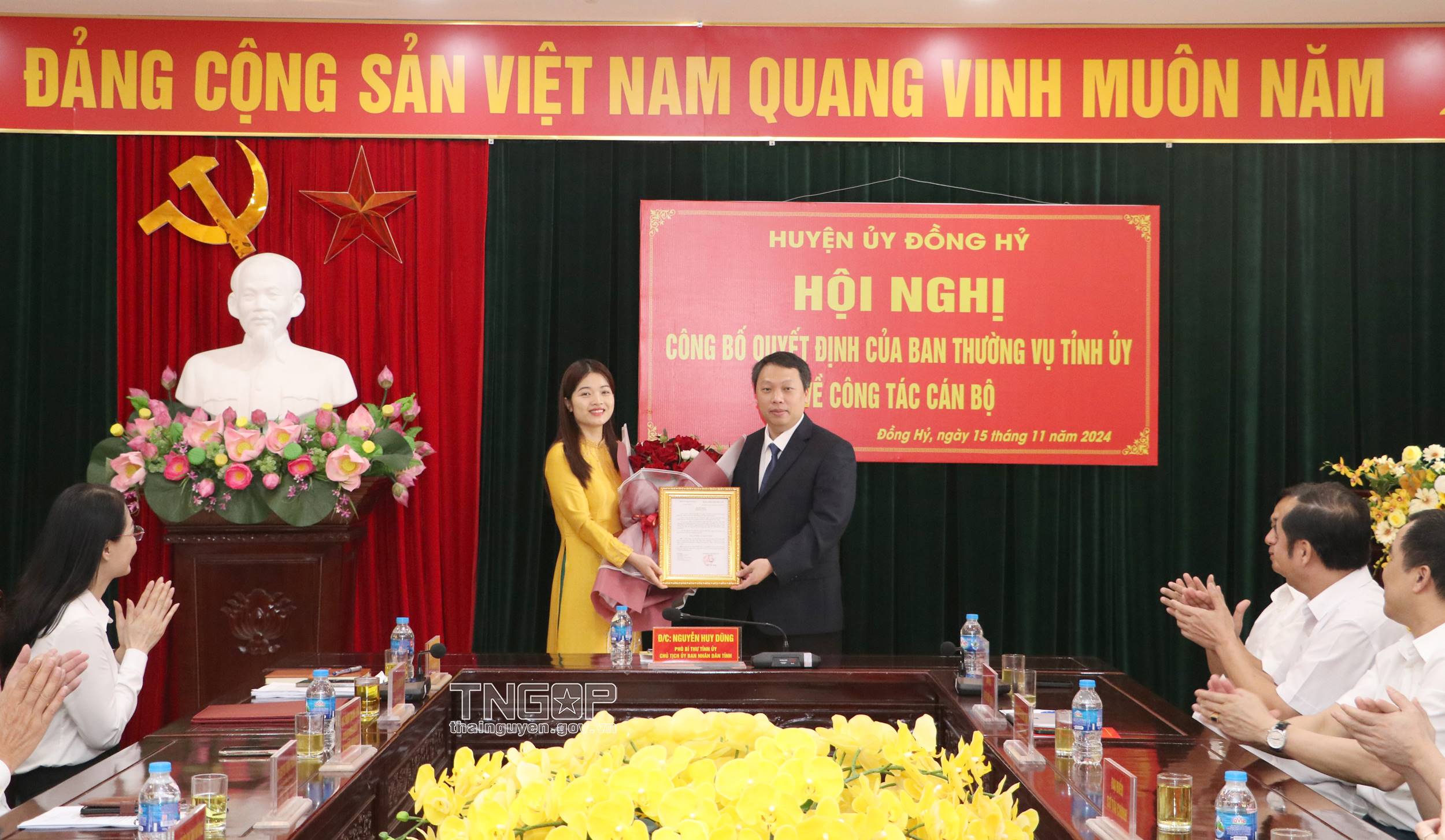 Theo đó, tại Quyết định số 2266-QĐ/TU ngày 7/11/2024 của Ban Thường vụ Tỉnh ủy Thái Nguyên điều động, chỉ định đồng chí Vũ Thị Anh Dung, Phó Giám đốc Sở Tài chính tham gia Ban chấp hành, Ban Thường vụ Huyện ủy và giữ chức vụ Phó Bí thư Huyện ủy Đồng Hỷ nhiệm kỳ 2020 - 2025, kể từ ngày 15/11/2024.