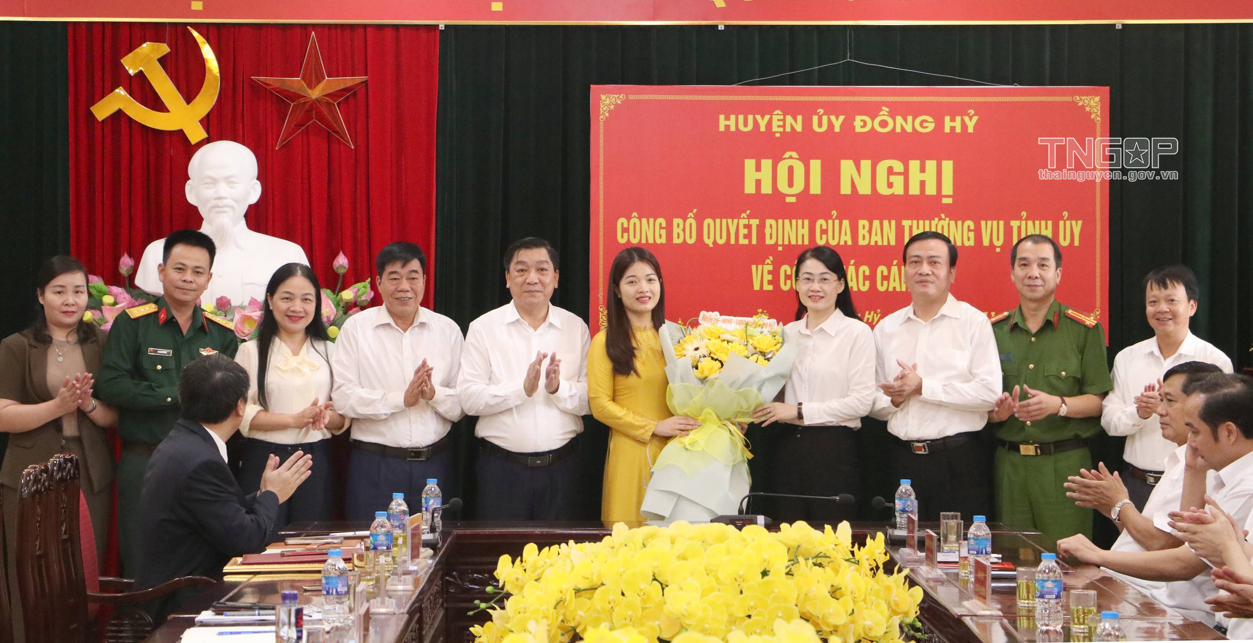 Tập thể lãnh đạo huyện Đồng Hỷ tặng hoa chúc mừng đồng chí Vũ Thị Anh Dung